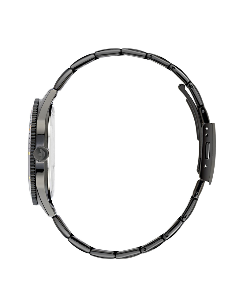 This adidas Originals Edition Three watch combines classic style with practical functionality, offering hours, minutes, and seconds right on your wrist. Its unique California dial showcases a blend of Roman and Arabic numerals, while the sleek brushed and polished three-link bracelet adds a touch of elegance.