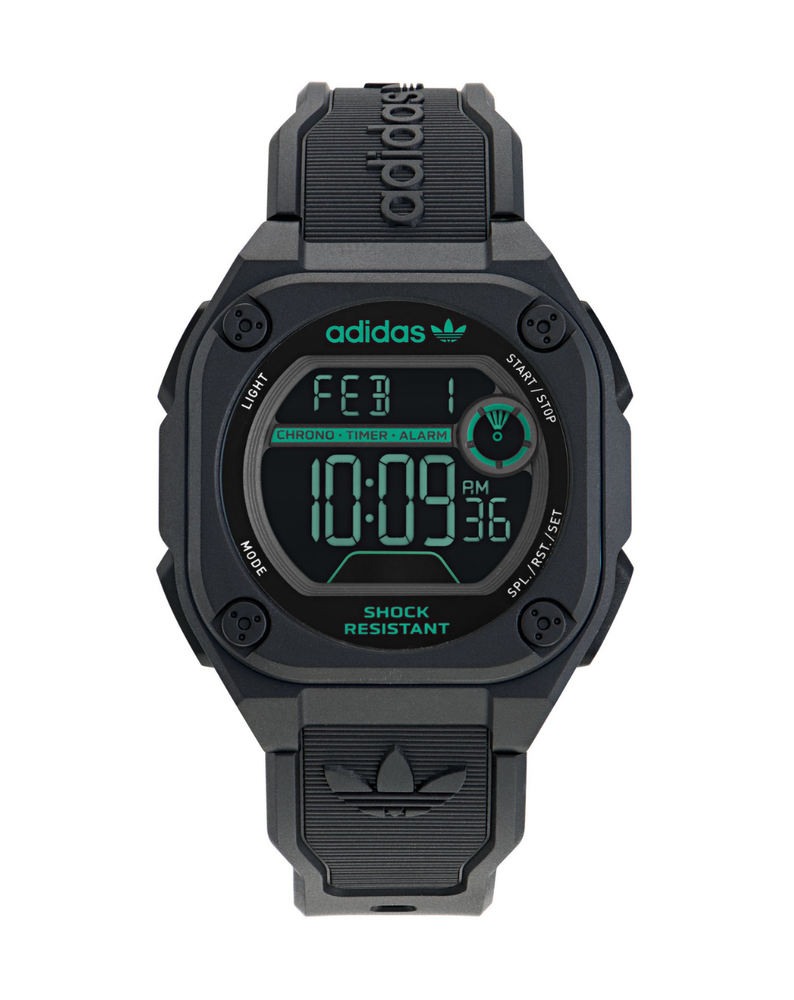 The adidas City Tech Two watch combines modern style with exceptional functionality, making it perfect for those living an adventurous lifestyle. With features like a count-down timer, a stopwatch, and world time, it's designed to accompany you on any journey.