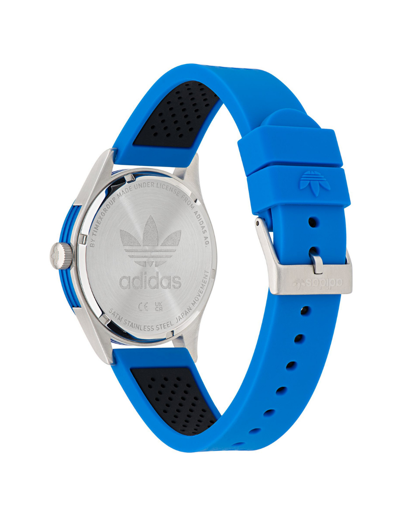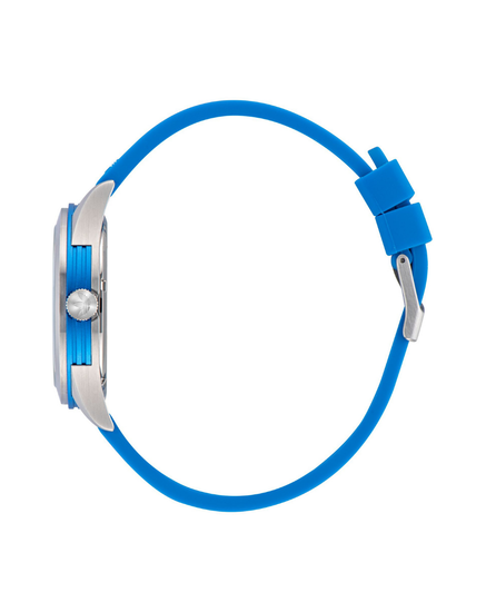 This adidas Code Three watch is designed for everyday versatility and features playful hands along with a blue aluminium insert around the stainless steel case. The comfortable blue silicone strap ensures that this stylish watch goes well with any outfit.