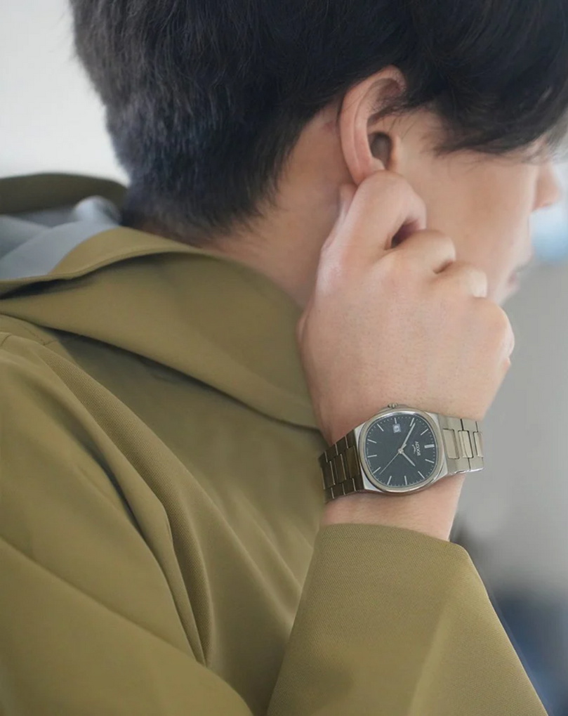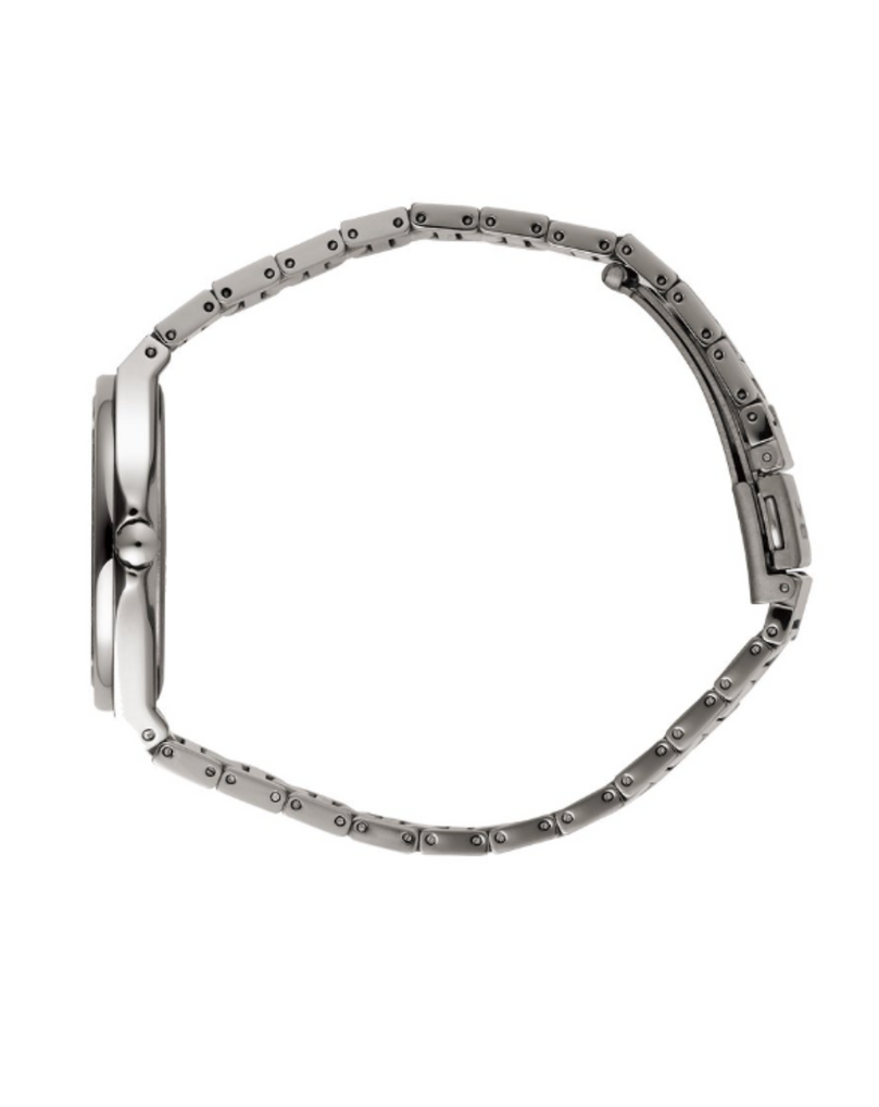 Hands: Hour, minute, and second hands in matching titanium tone