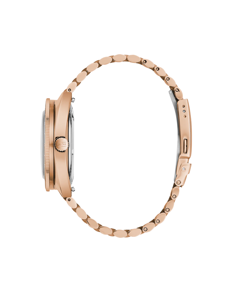 1× Bulova Oceanographer GMT Men’s Watch – 97B215 (Black Dial / Rose Gold-Tone Stainless Steel Bracelet)