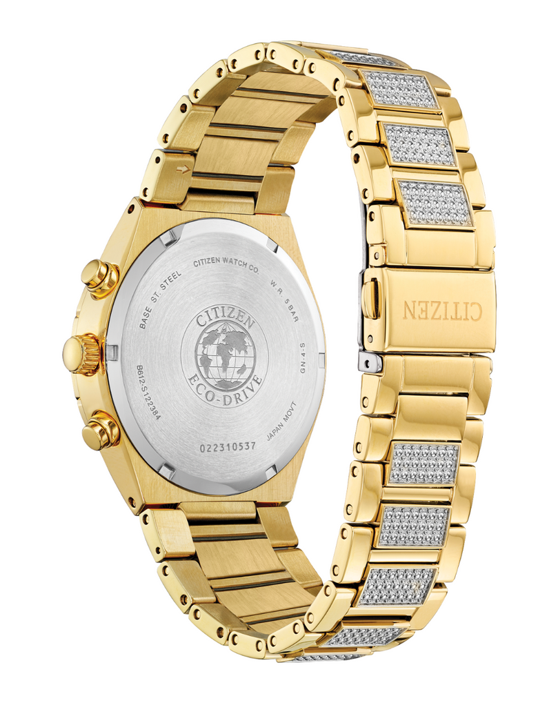 The Citizen CA0752-58E is a sophisticated and stylish men's chronograph watch that combines modern design with advanced functionality. Featuring a 43mm stainless steel case with a sleek black dial and gold-tone accents, this watch exudes elegance while maintaining durability. Powered by Citizen's Eco-Drive technology, it harnesses light to keep the battery running, eliminating the need for regular battery changes. The chronograph functionality adds a sporty touch, making it a versatile timepiece for both formal and casual occasions.