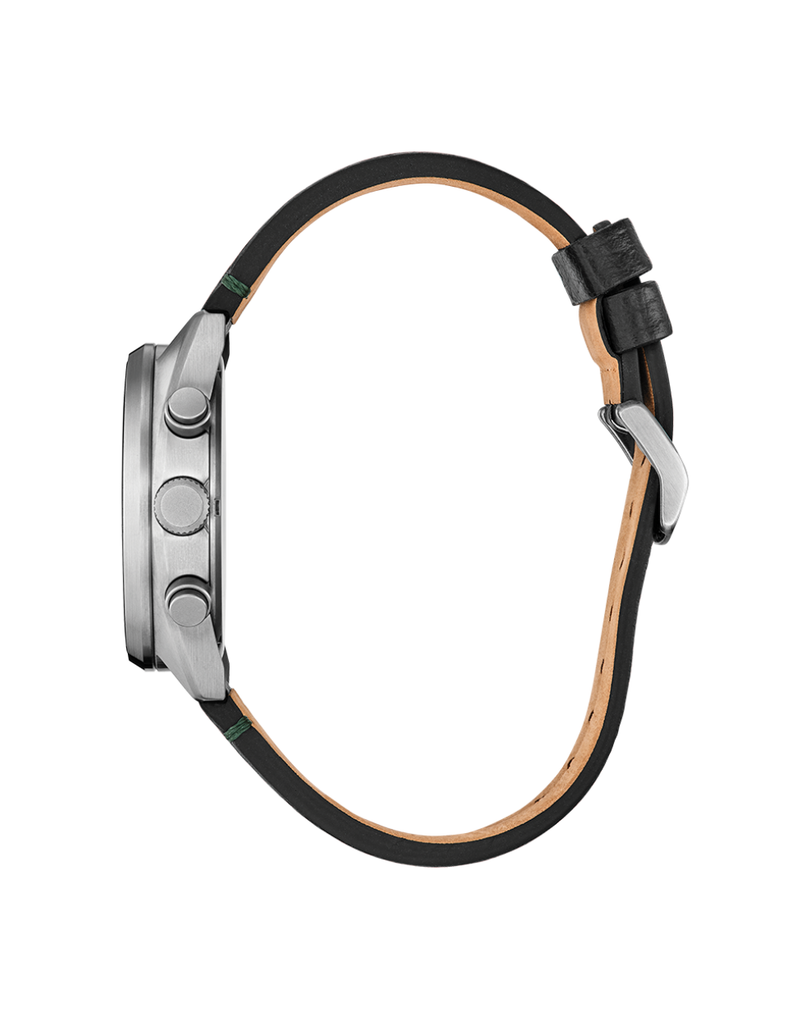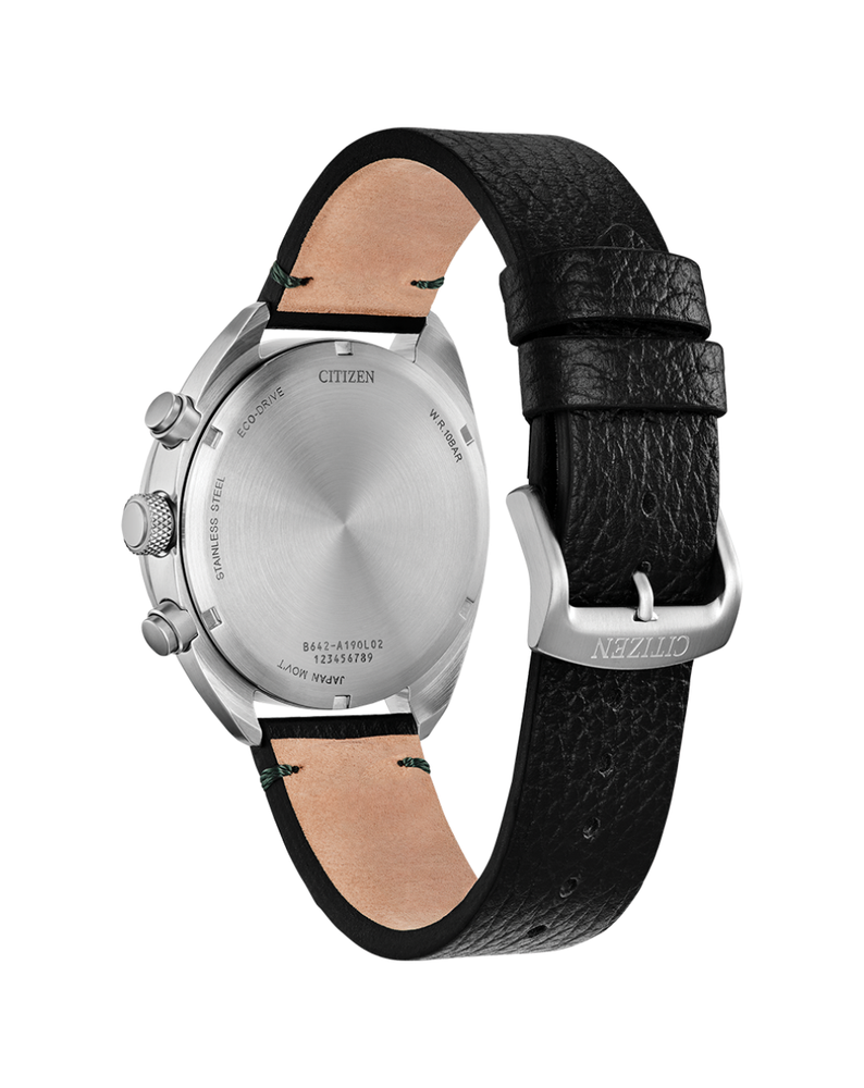 Style Highlights: Rich green dial pop, clean sporty chronograph look, low-maintenance Eco-Drive performance with a dress-ready leather strap
