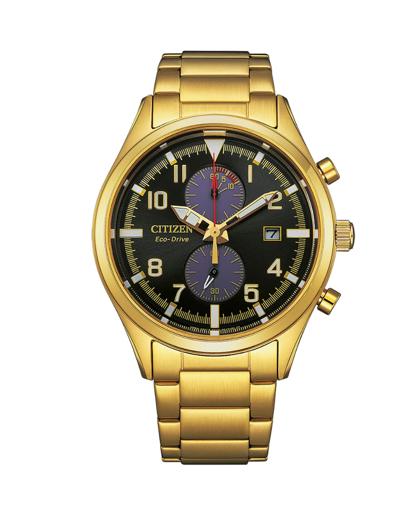 1× CA7022-87E – Eco-Drive Chronograph (Black Dial, Gold-Tone Stainless Steel)