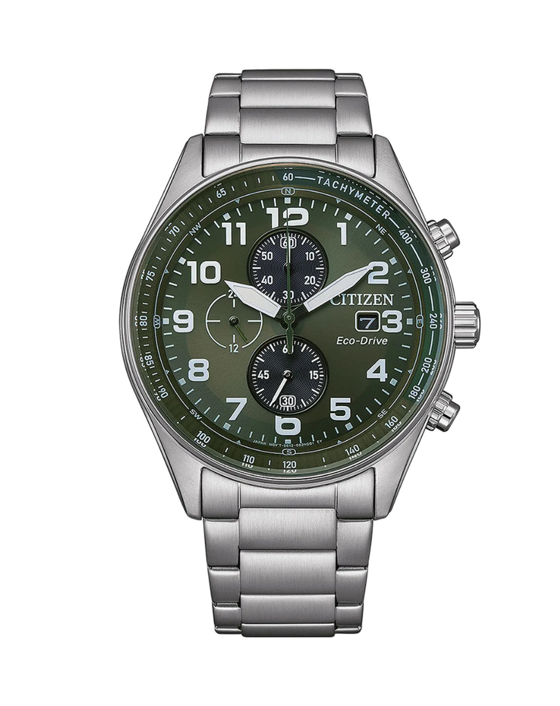 1× CA0770-72X – Eco-Drive Chronograph (Green Dial, Stainless Steel)
