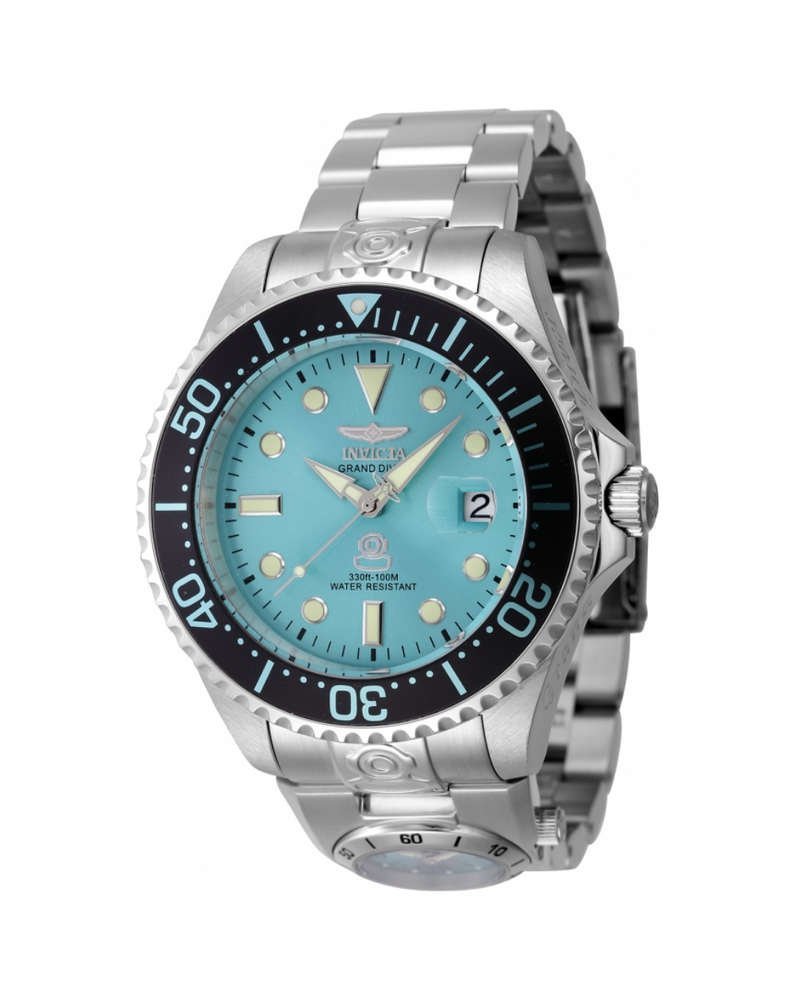 The Invicta 45815 delivers a bold combination of dive utility and dual-time functionality. Housed in a 47 mm stainless steel case, it features a charcoal dial with blue accents, dual-time display, and a unidirectional bezel. Its NH35A automatic movement is paired with a quartz PC10 dual-time module for added precision. With 100 m water resistance and a sturdy steel bracelet, this is a rugged yet refined timepiece built for versatility.
