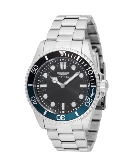The Invicta 49709 Pro Diver features a 43 mm stainless steel case, black dial, and striking blue bezel. Equipped with a reliable Japanese quartz movement and Flame Fusion crystal, it offers precise performance with a stylish dive-inspired design. Water resistant to 100 m, this watch balances everyday functionality with classic sport appeal.