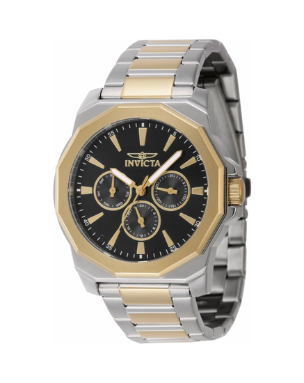 The Invicta 46845 Speedway delivers timeless two-tone styling with everyday functionality. Its 42 mm gold and silver stainless steel case frames a classic black dial with multifunction subdials for day, date, and 24-hour time, making it a stylish and practical choice for daily wear.