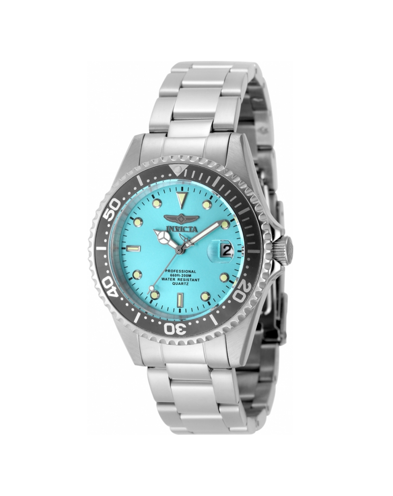 The Invicta Pro Diver 48726 delivers professional dive functionality in a refined package. Its 38mm stainless steel case houses a striking blue sunray dial with luminous markers, paired with a blue bezel for precise dive timing.