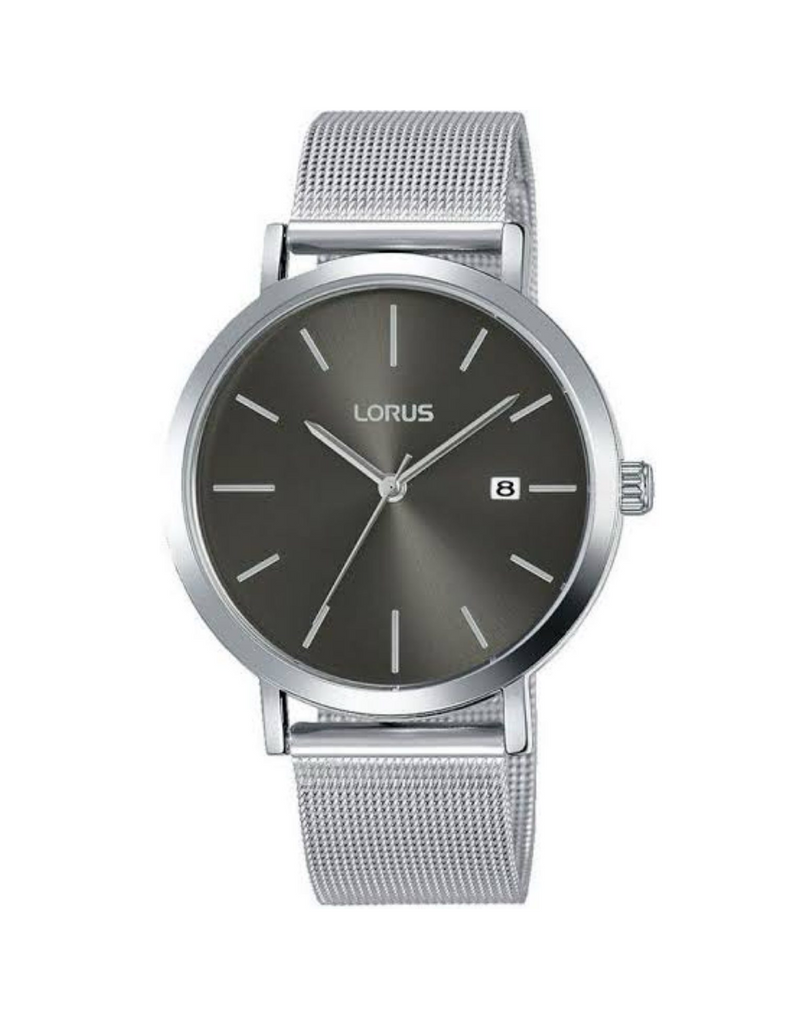 This timepiece features a sleek black dial complemented by a stainless steel mesh bracelet, offering a refined appearance suitable for both casual and formal occasions.