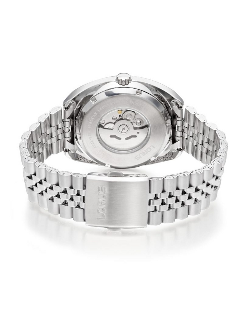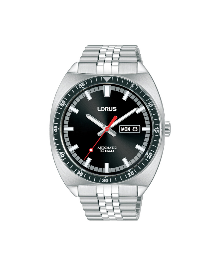 Experience the perfect balance of style and performance with this sophisticated timepiece. Its black sunray dial, paired with hour, minute, and second hands, offers a crisp, modern look, while the day & date function keeps you organized at a glance. The stainless steel case boasts a see-through back that showcases the automatic movement, and the stainless steel wrap delivers both durability and contemporary flair. Designed for daily wear and beyond, it features a 43mm case size, 12.4mm thickness, and 10 bar water resistance—ensuring it stands up to life’s adventures. Finished with a flat mineral crystal and a comfortable 22mm band width, this watch seamlessly blends form and function.
