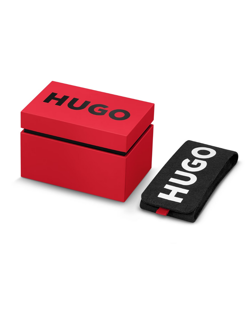 The Hugo Boss Troper HB1514101 is a men's chronograph watch that combines sporty aesthetics with functionality. This timepiece features a black dial complemented by a blue bezel, offering a modern and dynamic look. The chronograph functionality is displayed through sub-dials, and a date window is positioned at 4 o'clock. The stainless steel bracelet ensures durability and a comfortable fit.